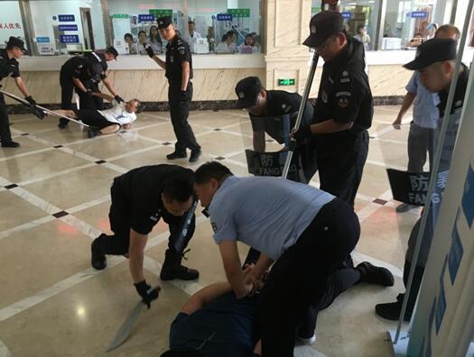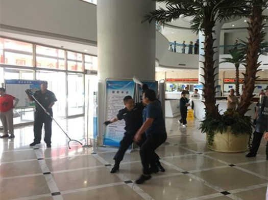 為迎接建國70華誕,進(jìn)一步做好醫(yī)院安全防范工作,提高醫(yī)務(wù)人員安全防范意識,增強(qiáng)保衛(wèi)人員應(yīng)急處事能力,維護(hù)醫(yī)院財(cái)產(chǎn)安全,8月16日下午我院保衛(wèi)科聯(lián)合文林路派出所警務(wù)工作站,在腦科樓門診進(jìn)行現(xiàn)場防暴應(yīng)急演練。