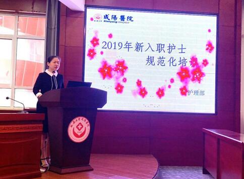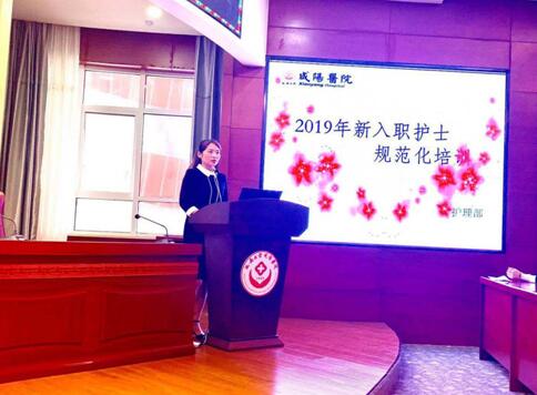 護(hù)理部楊敏主任代表全院1047名護(hù)士對新入職護(hù)士的加入表示熱烈的歡迎。一句:“孩子們別怕,在你們的身后有護(hù)理部8名老師的引導(dǎo),有70余名護(hù)士長為你們領(lǐng)航,有6個護(hù)理專業(yè)委員會、6個專業(yè)組為你們的專業(yè)發(fā)展做支撐,有近20名的心理咨詢師會給你們力量,教會你們愛與被愛”,這語重心長的話語讓全場的學(xué)員倍感暖心。并代表我院帶教團(tuán)隊將認(rèn)真履行帶教職責(zé),用心指導(dǎo),與學(xué)員一起攜手同行。希望學(xué)員們以延安大學(xué)咸陽醫(yī)院為榮,借助醫(yī)院堅實的平臺實現(xiàn)自己的夢想,腳踏實地,兢兢業(yè)業(yè),時刻牢記為患者負(fù)責(zé)、為自己負(fù)責(zé)、為醫(yī)院負(fù)責(zé)。