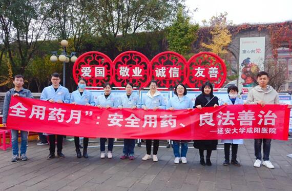 11月7日上午延安大學(xué)咸陽(yáng)醫(yī)院藥學(xué)部和社區(qū)一行人員參加了由咸陽(yáng)市市場(chǎng)監(jiān)管局在中華廣場(chǎng)統(tǒng)籌舉辦的“安全用藥 良法善治”的主題宣傳活動(dòng)。