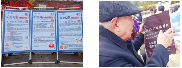 為了發(fā)揮我院藥師的作用,現(xiàn)場(chǎng)通過設(shè)立用藥咨詢臺(tái)、發(fā)放用藥科普資料、陳列安全用藥小常識(shí)展板、義診等方式宣傳安全、合理用藥理念和科普知識(shí)。此外,為了更好地服務(wù)廣大人群,我們積極推薦咨詢者掃碼關(guān)注延安大學(xué)咸陽(yáng)醫(yī)院藥學(xué)公眾號(hào),讓百姓足不出戶,通過手機(jī)就能了解更豐富的用藥小常識(shí)和藥品有關(guān)的法律法規(guī),享受藥師在線為您服務(wù),從而為廣大人群的合理安全用藥保駕護(hù)航。