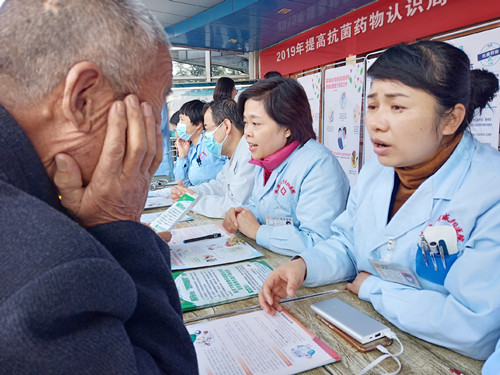 2019年我國提高抗菌藥物認識周活動主題為:“著眼未來 停止過度使用和誤用抗菌藥物”。延安大學咸陽醫(yī)院為貫徹落實《遏制細菌耐藥國家行動計劃(2016—2020 年)》有關要求,于 2019年11月21日下午舉辦了“提高抗菌藥物認識周”義診活動。