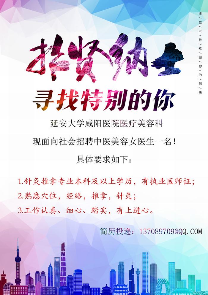 延安大學(xué)咸陽(yáng)醫(yī)院招聘中醫(yī)美容女醫(yī)生
