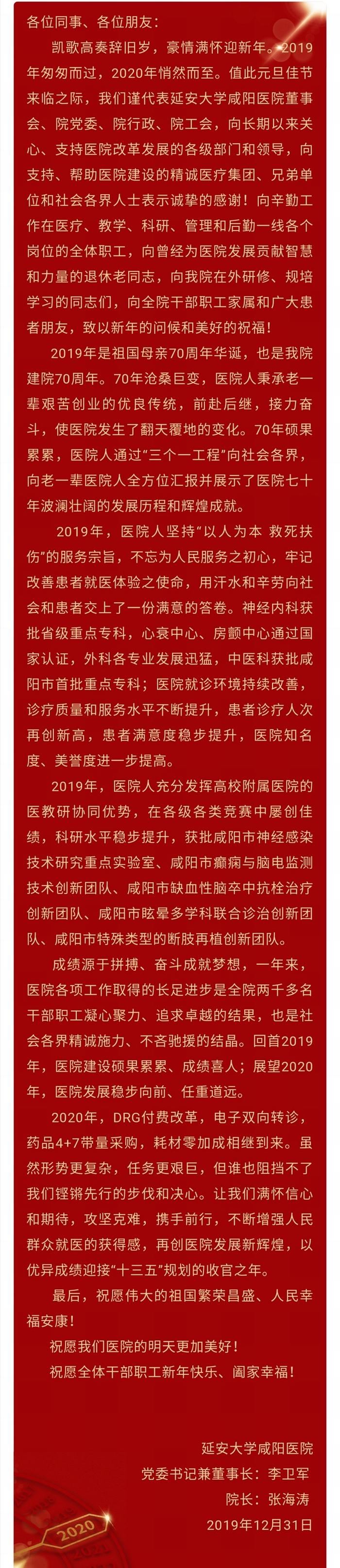 延安大學(xué)咸陽醫(yī)院新年寄語