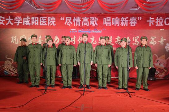 比賽中場(chǎng),精誠醫(yī)療集團(tuán)董事局張群主席與醫(yī)院的老戰(zhàn)友們以矯健的步伐,在軍事化管理的部隊(duì)口號(hào)中登臺(tái)。共同用嘹亮雄壯的歌聲演唱了《鐵道兵之歌》,唱出了鐵道兵不怕困難、勇往直前的大無畏精神,正是這種精神的傳承,鑄就了延大咸陽醫(yī)院的輝煌歷史,他們的本色出演為整場(chǎng)比賽錦上添花。