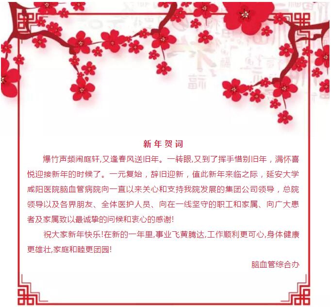 延安大學(xué)咸陽醫(yī)院腦血管病院新春賀詞