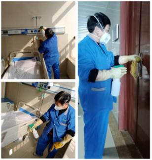(2)各病區(qū)加強消毒責任到人。對病區(qū)各個設施、區(qū)域進行無死角消毒每日數(shù)次;樓道24小時、病室定期開窗通風;對有患者病室使用空氣消毒機每日消毒。