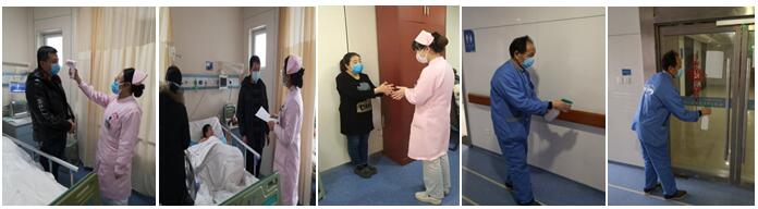 (4)如需住院,我們病區(qū)的防控工作按部就班進行:每天責任護士對陪護人員早晚測量體溫;向陪護人員講解正確洗手方法及防控安全知識;保潔員每天用消毒液噴灑病區(qū),尤其是門把手、樓道護欄,做好消毒防控;患者及家屬出入均配口罩。