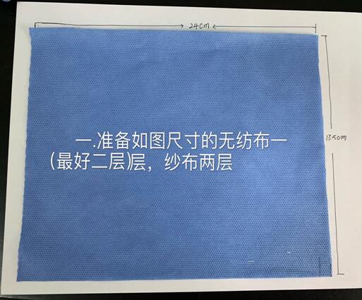 近期病毒肆虐,國家的防護物資緊缺,尤其是口罩消耗量大,庫存吃緊,我院放療科李月華通過查閱資料得知無紡布具有防潮、透氣、容易分解、可循環(huán)再用等特點,也是防護服和手術(shù)衣的制作材料,其滅菌級別和材質(zhì)比普通醫(yī)用外科口罩還要優(yōu)良,并且媒體也有報道西安交大二附院,以及內(nèi)蒙、長沙等各大醫(yī)院醫(yī)護人員也在自力更生采用此材料進行口罩制作,其防水及透氣性能俱佳,于是放療科李月華通過學習和總結(jié),為科室同事和身邊防護口罩不足的部分工作人員,縫制了幾十只口罩供大家交替使用,很大程度上緩解了本科室人員醫(yī)用口罩不足的問題?,F(xiàn)將制作方法推薦給大家: