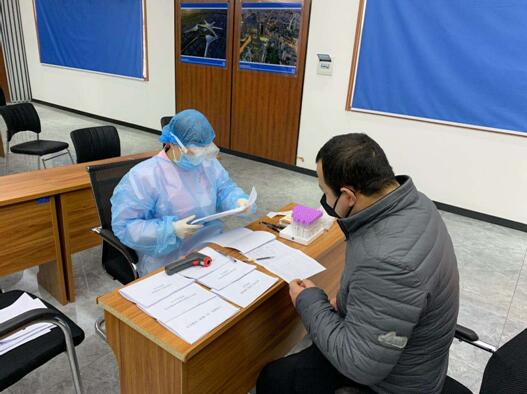 為做好本次體檢活動,院領(lǐng)導(dǎo)高度重視,為出行醫(yī)護(hù)人員配備二級防護(hù)著裝,確保特殊時期的“特殊體檢”安全順利開展。工作前,嚴(yán)格按照工作流程,對參加體檢的醫(yī)護(hù)人員進(jìn)行專業(yè)技術(shù)、體檢流程、流行病學(xué)史調(diào)查、個人防護(hù)等知識培訓(xùn),并進(jìn)行綜合演練。到達(dá)目的地后,體檢科護(hù)士長吳亞婭組織人員分類擺放止血帶、棉簽、碘伏、醫(yī)用手套、采血針、采血試管等,統(tǒng)籌安排分組,崗位到個人。物資準(zhǔn)備齊全,護(hù)理人員全副武裝,迅速到位,規(guī)范操作,一人一針一管一消毒,防止交叉感染,杜絕反復(fù)穿刺,力爭一針見血?!罢埓蠹蚁喔粢幻着抨?,先到這邊進(jìn)行預(yù)檢?!痹卺t(yī)護(hù)人員的指引下,現(xiàn)場企業(yè)返工人員依次排隊進(jìn)行采血,醫(yī)護(hù)人員在每個環(huán)節(jié)和步驟嚴(yán)把健康篩查關(guān)口,做好體溫檢測、詢問新冠肺炎有關(guān)流行病學(xué)史并對照標(biāo)準(zhǔn)指導(dǎo)企業(yè)員工填寫信息登記表,同時還科普自我防護(hù)健康知識。通過精心準(zhǔn)備和安排,整個體檢流程十分緊湊,大大減少了人們的逗留時間,降低了健康風(fēng)險。在這種高負(fù)荷運轉(zhuǎn)的工作強度下,大家默默堅持著,腰痛、頭頸痛,活動一下關(guān)節(jié),眼睛疲乏了,閉目緩解后繼續(xù)干,其中一天早上九點到下午兩點輾轉(zhuǎn)了四個地方,四名護(hù)士完成了將近300名復(fù)工人員的血樣標(biāo)本采集,立即送往檢驗科進(jìn)行核酸檢測,直到下午三點多才吃上午飯。貼心的舉動,嫻熟的技術(shù),讓企業(yè)員工贊不絕口。