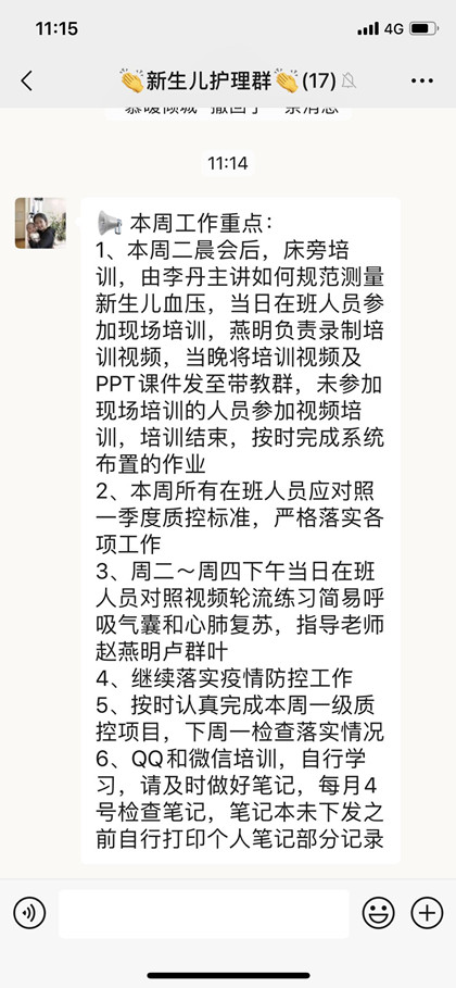 3月17日兒科二病區(qū)/新生兒科線上課堂開學(xué)了!減少人員聚集,創(chuàng)新培訓(xùn)學(xué)習(xí)方式,通過QQ建群線上教學(xué)、微信線上理論教學(xué)等相結(jié)合的方式,對(duì)全科護(hù)理人員進(jìn)行床旁理論、技能培訓(xùn),實(shí)現(xiàn)特殊時(shí)期培訓(xùn)“不打烊”。