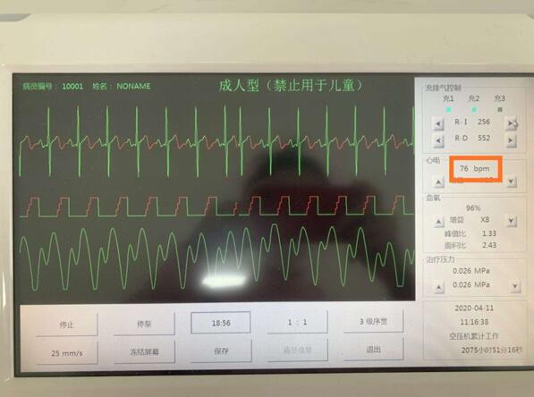 體外反搏在心臟的舒張期將雙下肢及臀部的動(dòng)脈血驅(qū)返至主動(dòng)脈里面,這時(shí)主動(dòng)脈內(nèi)的壓力(即舒張壓)大大的增加,那么強(qiáng)大的壓力使得無孔不入的血流在心臟的舒張期再次向外周供血,當(dāng)血流到達(dá)肱動(dòng)脈時(shí)被血壓計(jì)檢測(cè)到,故此就形成了脈搏是心率的兩倍的效應(yīng)。