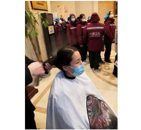 楊文靜同志援漢前剪發(fā)