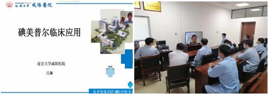 2020年4月24日,延安大學(xué)咸陽(yáng)醫(yī)院劉連鋒教授、呂琳主管技師攜手四川大學(xué)華西醫(yī)院李真林教授、趙俐紅護(hù)士長(zhǎng)共同舉辦了碘美普爾400全身應(yīng)用研討會(huì)(網(wǎng)絡(luò)會(huì)),邀請(qǐng)全省市業(yè)界同仁共同學(xué)習(xí)觀看。下午3點(diǎn),網(wǎng)絡(luò)會(huì)議開(kāi)始,延安大學(xué)咸陽(yáng)醫(yī)院CT/MRI室全組醫(yī)生及部分技師進(jìn)行聽(tīng)課學(xué)習(xí),劉連鋒教授對(duì)大會(huì)進(jìn)行了會(huì)議致辭,并邀請(qǐng)四川大學(xué)華西醫(yī)院李真林教授對(duì)于《高濃度對(duì)比劑全身應(yīng)用》進(jìn)行了闡述與講解;趙俐紅護(hù)士長(zhǎng)對(duì)《高濃度對(duì)比劑護(hù)理應(yīng)用安全》進(jìn)行了舉例及說(shuō)明,講授內(nèi)容客觀詳細(xì),引人入勝,使得與會(huì)人員對(duì)于高濃度對(duì)比劑的應(yīng)用及護(hù)理認(rèn)識(shí)提升了高度。