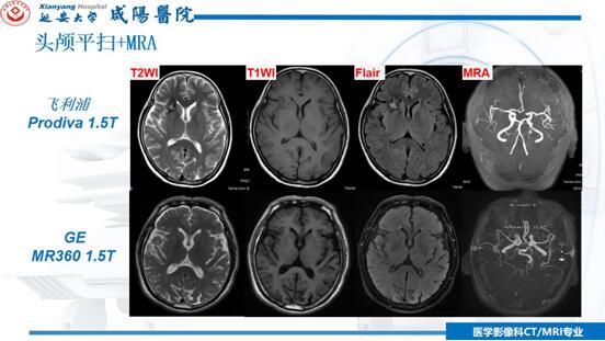 劉連鋒主任指出,飛利浦Prodiva1.5T與GE-MR360兩臺1.5T磁共振設備磁共振在功能成像,如類PET、3D-ASL、DTI、高清DWI、4D-MRA,尤其是高分辨血管壁成像和CE-MRA等檢查項目上,擁有圖像清晰度高、檢查時間快等優(yōu)勢,我們要發(fā)揚這種優(yōu)勢,更好的為患者提供優(yōu)質的服務,同時要加深與臨床科室的合作,開展實用性技術。我們相信,在新設備、新技術項目的臨床應用實踐中,在總結經驗、對比學習的過程中,在提高自身業(yè)務能力、不斷探索的努力下,我院CT/MRI室將更好的與臨床合作、服務于廣大患者,為精準診斷、精準治療、真誠服務、健康同行這一目標不斷努力,不斷前行!