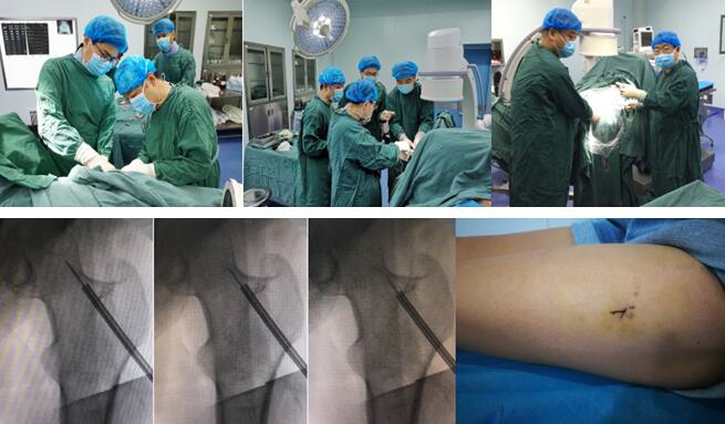 近期,我院骨科二病區(qū)收治一例34歲女性、被髖關(guān)節(jié)疼痛困擾2月余的骨腫瘤患者。入院后侯曉進主任帶領(lǐng)各級醫(yī)師查房,綜合患者病史、體征及各項影像學(xué)資料,初步診斷為骨良性腫瘤(骨樣骨瘤)。進一步評估患者年齡、髖關(guān)節(jié)功能恢復(fù)程度,了解患者的訴求后制定治療方案,原則以微創(chuàng)治療為首選。近年來射頻消融、超聲刀等均應(yīng)用于骨腫瘤的治療,其具有手術(shù)創(chuàng)傷小、治療效果滿意、腫瘤復(fù)發(fā)率低、患者滿意度高等優(yōu)良的臨床療效及社會效益。因骨樣骨瘤同樣適宜行射頻消融手術(shù),遂將患者資料與以王永主任為首,劉文剛、杜峰醫(yī)師等具有豐富臨床經(jīng)驗的疼痛、射頻治療團隊進行探討,確定此患者適宜行微創(chuàng)經(jīng)皮穿刺取病檢術(shù)+射頻消融手術(shù)。該方法在咸陽市具有先進性,為我院微創(chuàng)治療骨腫瘤提出了新的思路,代表了我院骨科專業(yè)診治范圍的再突破。