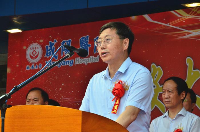 延安大學(xué)黨委書記張金鎖在致辭中表示,延安大學(xué)咸陽(yáng)醫(yī)院獲批延安大學(xué)直屬附屬醫(yī)院是貫徹落實(shí)習(xí)近平總書記來陜考察重要講話精神的重大舉措,是落實(shí)“健康陜西”行動(dòng),深化醫(yī)教協(xié)同,全面推進(jìn)醫(yī)學(xué)教育改革創(chuàng)新的重要實(shí)踐。他希望延安大學(xué)咸陽(yáng)醫(yī)院以直屬附屬醫(yī)院建設(shè)為契機(jī),著眼現(xiàn)代醫(yī)院治理體系,緊盯高水平三級(jí)甲等綜合醫(yī)院建設(shè)愿景,弘揚(yáng)辦醫(yī)治院優(yōu)良傳統(tǒng),發(fā)揮好重點(diǎn)??苾?yōu)勢(shì)特色,承擔(dān)好大學(xué)直屬附屬醫(yī)院在醫(yī)療、教育、科研、管理等方面的目標(biāo)任務(wù),全面推進(jìn)緊密型醫(yī)教共同體建設(shè),推動(dòng)醫(yī)院各項(xiàng)事業(yè)在新的起點(diǎn)上取得新的成績(jī),為“健康陜西”乃至“健康中國(guó)”建設(shè)作出新的貢獻(xiàn)。