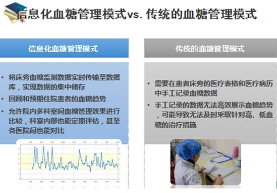 醫(yī)療信息化是國家信息化戰(zhàn)略的重要組成部分,加強(qiáng)醫(yī)療信息化建設(shè)是節(jié)省成本、提高醫(yī)療服務(wù)效率與質(zhì)量的重要手段。血糖信息化管理是未來發(fā)展的必然要求。它實現(xiàn)了血糖監(jiān)測從數(shù)據(jù)到圖形的轉(zhuǎn)換,可視化的圖像結(jié)果有利于提升糖尿病患者的自我認(rèn)知,從而帶來教育、飲食、運(yùn)動、藥物上的改變。另一方面,多學(xué)科協(xié)作、全院同質(zhì)化管理血糖有助于縮短患者住院日,減少并發(fā)癥發(fā)生。未來血糖信息化管理會從醫(yī)院走向社區(qū),實現(xiàn)對糖尿病患者的全病程跟蹤管理。