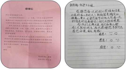不放過(guò)任何一個(gè)小點(diǎn),用細(xì)“心”贏得患者肯定:患者崔某,動(dòng)脈瘤術(shù)后入住我科,該患者神志清,文化程度較高,對(duì)自身疾病認(rèn)識(shí)及進(jìn)展關(guān)注程度較高,思想負(fù)擔(dān)重,醫(yī)護(hù)人員除講解疾病治療,護(hù)理及做好康復(fù)指導(dǎo)外,密切關(guān)注其心理動(dòng)態(tài)變化,及時(shí)安撫,和患者用心交流??吹轿覀?yōu)閺埧诤粑颊呒?xì)心的用濕紗布覆蓋口部;看到我們?yōu)榛杳曰颊哌M(jìn)行“音樂(lè)療法”;看到我們?yōu)榛颊邔㈤L(zhǎng)發(fā)編起以增加舒適度……,他說(shuō)有我們?cè)谒馨病靶摹薄^D(zhuǎn)出監(jiān)護(hù)室的第一天,特意讓家屬為我們送來(lái)感謝信。