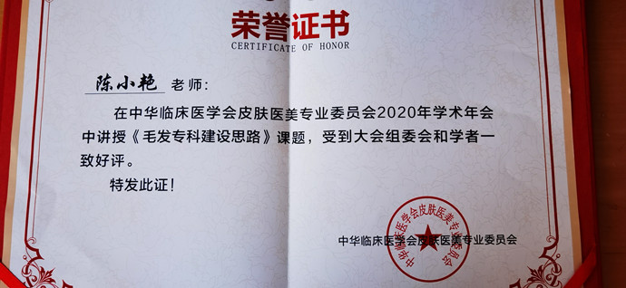 ——我院皮膚科陳小艷主任受邀參加“中華臨床醫(yī)學(xué)會(huì)皮膚醫(yī)美專業(yè)委員會(huì)2020年學(xué)術(shù)會(huì)議暨中臨皮美博展會(huì)”