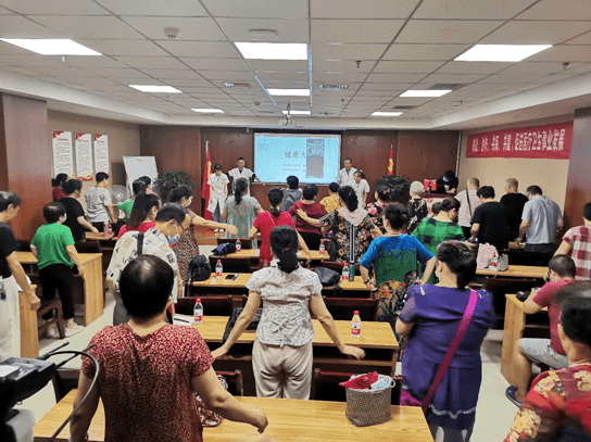健康大講堂會(huì)場(chǎng)休息時(shí),社區(qū)居民在專家的指導(dǎo)下,做起了健身操,現(xiàn)場(chǎng)氣氛十分活躍。會(huì)后我院宣傳部趙文章科長在碑林紅纓醫(yī)院郝院長的安排下向社區(qū)居民送上由我院編印的《心血管疾病防治指南》和《腦血管疾病防治指南》。