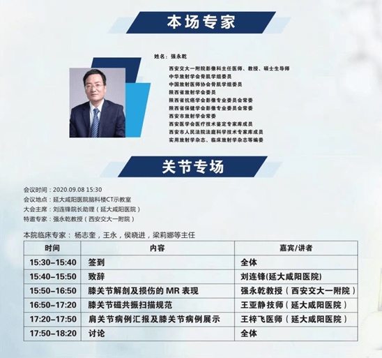時隔三個多月,強永乾教授再次來到我院,繼“肩關(guān)節(jié)解剖及損傷的MRI表現(xiàn)”之后,進行本次“膝關(guān)節(jié)解剖與損傷的MR表現(xiàn)”的講授,下午三點半,強教授在CT/MRI示教室的授課準時開始,骨科一病區(qū)楊志奎主任、骨科二病區(qū)侯曉進副主任、疼痛科王永主任、功能科吳建軍主任、康復(fù)理療科梁莉娜主任、疼痛科劉康責任總醫(yī)師等專家、醫(yī)技、臨床科室部分醫(yī)師參與本次會議。劉連鋒教授主持開幕式,交大一附院強永乾教授致辭。