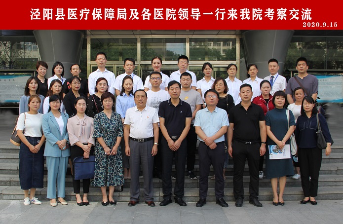 2020年9月15日,涇陽縣醫(yī)療保障局副局長楊宏勛及涇陽縣各級醫(yī)院領(lǐng)導(dǎo)一行20人蒞臨我院考察交流。延安大學(xué)咸陽醫(yī)院董事長李衛(wèi)軍、院長助理沙寧、副總會計(jì)師高霽及相關(guān)職能部門、臨床科室負(fù)責(zé)人陪同接待。