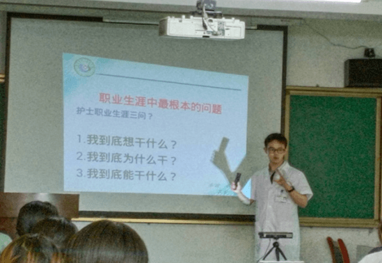 雷棟授課的題目為《“新時(shí)代”護(hù)士職業(yè)生涯規(guī)劃》,他充分結(jié)合目前護(hù)生畢業(yè)后的就業(yè)前景、護(hù)士的執(zhí)業(yè)環(huán)境及職業(yè)規(guī)劃,向在座的護(hù)生講述了職業(yè)生涯中職業(yè)規(guī)劃的意義、原則及方法等,并通過(guò)一系列典型事例,結(jié)合自身的工作體會(huì),向護(hù)生們闡述如何做好護(hù)士職業(yè)生涯規(guī)劃。雷棟護(hù)士深入淺出的講解、引經(jīng)據(jù)典的事例,牢牢吸引著在場(chǎng)護(hù)生的注意力,娓娓道來(lái)的親身體驗(yàn)、工作經(jīng)歷,帶給護(hù)生課堂之外的深刻思考,讓護(hù)生對(duì)護(hù)士的職業(yè)生涯規(guī)劃有了進(jìn)一步的認(rèn)知。授課在熱烈的掌聲中結(jié)束,護(hù)生們紛紛表示獲益匪淺。