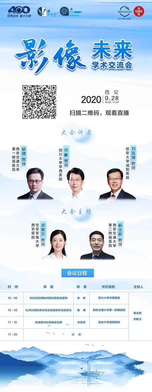 2020年9月28日,以“影像未來”為主題的學(xué)術(shù)交流會議通過網(wǎng)絡(luò)直播的形式順利召開,延安大學(xué)咸陽醫(yī)院院長助理兼CT/MRI室主任劉連鋒教授與西安交通大學(xué)第一附屬醫(yī)院楊健教授、四川大學(xué)華西醫(yī)院宋彬教授受邀參加本次會議,向廣大觀眾介紹建設(shè)思想與方法經(jīng)驗(yàn),為加強(qiáng)放射學(xué)科建設(shè)和提高釓對比劑臨床應(yīng)用水平提出思路,分享經(jīng)驗(yàn)。
