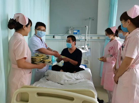 每逢佳節(jié)倍思親,中秋節(jié)是我國重要的傳統(tǒng)節(jié)日,是老百姓回家團(tuán)圓的日子。但對于還未完全康復(fù)的患者來說,卻不得不留在醫(yī)院治療,繼續(xù)與疾病做斗爭不能與家人團(tuán)聚為了讓住院患者在醫(yī)院同樣能夠感受到中秋佳節(jié)的氣氛,感受到家庭般的溫情關(guān)懷。中秋節(jié)當(dāng)天,神經(jīng)內(nèi)科七病區(qū)樊靜護(hù)士長帶領(lǐng)醫(yī)護(hù)人員將精心準(zhǔn)備的月餅和慰問送到了每一位患者手中,月餅雖小,卻表達(dá)了無微不至的人文關(guān)懷,更體現(xiàn)了我院“以人為本”的辦院理念;從細(xì)節(jié)出發(fā),從一點(diǎn)一滴的日常小事中給予患者關(guān)懷與幫助,視病人如親人,今天的愛心活動只是一個(gè)縮影,愛心將永遠(yuǎn)傳遞下去,讓每一位患者感受到大家庭的溫暖。
