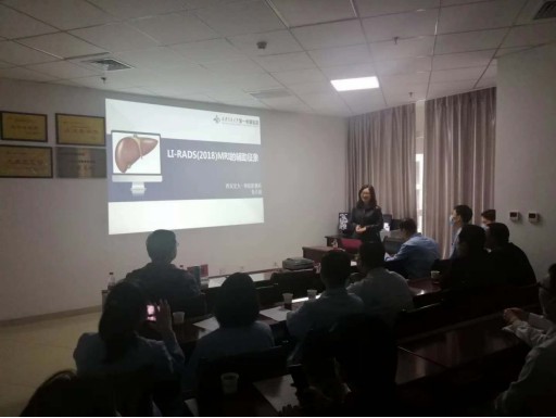 下午3點,會議正式開始,經過劉連鋒主任隆重介紹后,西安交大一附院張月浪教授對《LI-RADS輔助征象的解讀》進行講授,圍繞CT/MRI LI-RADS診斷法則及支持良、惡性病變的輔助征象等內容進行了精彩詳細的講解,引人入勝,韻味無窮,充分調動了所有在場聽眾濃厚的學習興趣,使得整體會場氣氛生動熱烈。張月浪教授指出, LI-RADS分級對于肝癌診斷認識的統(tǒng)一有很大意義,再加上輔助特征的幫助,會使我們診斷的更加精準,同時要辯證分析應用征象,進一步促進我們的診斷更加標準及規(guī)范。本次授課讓與會臨床及醫(yī)技人員對肝癌診斷與分級有了更加清晰與深刻的認識,對我院肝癌診斷水平有顯著提高。