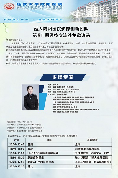 2020年10月14日,延安大學咸陽醫(yī)院第81期醫(yī)技交流沙龍活動在腦科樓CT/MRI示教室如期舉辦,醫(yī)學影像科主任劉連鋒教授主持,特邀西安交大一附院張月浪教授、旬邑縣醫(yī)院影像科王興國主任及我院普外肝膽科李玉強主任、蔡斌責任總醫(yī)師、消化二病區(qū)張榮主任、腫瘤內科殷國慶主任等臨床醫(yī)師參加本次活動。我院影像及臨床醫(yī)、技、護共60余人參加了本次會議。