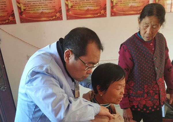 疼痛科王永主任為老鄉(xiāng)按摩頸椎