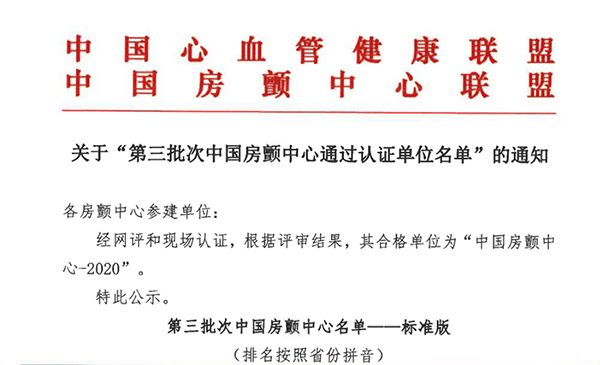 我院于2019年02月,由心血管病院吳棟梁院長(zhǎng)牽頭,心血管內(nèi)科為主體,醫(yī)務(wù)部、門急診辦公室、醫(yī)院辦公室提供支持,急診科、心胸外科、腦血管病院、內(nèi)分泌科、普外科、放射科、超聲醫(yī)學(xué)科等多科室協(xié)作,正式啟動(dòng)房顫中心建設(shè)工作。2020年5月獲第三批房顫中心建設(shè)單位。2020年10月28日獲得中國(guó)房顫中心標(biāo)準(zhǔn)版認(rèn)證。