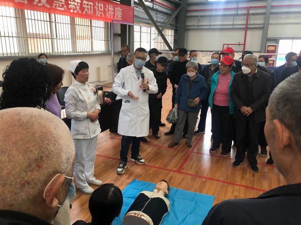 心血管一病區(qū)孟慶槐副主任醫(yī)師為該社區(qū)民眾講授了高血壓、糖尿病、冠心病等慢性病相關(guān)防治知識(shí),同時(shí)我院急診醫(yī)學(xué)科主管護(hù)師樊格為大家講解心肺復(fù)蘇相關(guān)理論知識(shí),并實(shí)地操作,生動(dòng)直觀的為廣大市民展現(xiàn)了心肺復(fù)蘇操作要領(lǐng),受到廣大人民群眾一致好評(píng)。