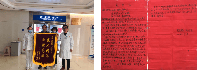 在我院開展醫(yī)療服務(wù)品牌建設(shè)、全面提升醫(yī)療質(zhì)量與醫(yī)療技術(shù)活動(dòng)之際,我院腫瘤/胸外科在苗滿園主任帶領(lǐng)下為一位腹膜后腫瘤患者成功切除了直徑達(dá)35cm的巨大腫瘤,腫瘤比成人頭顱都大,患者目前已順利康復(fù)出院,醫(yī)療技術(shù)及服務(wù)感受度,均受到患者及家屬的一致好評(píng),并收到感謝信一封,錦旗一面。
