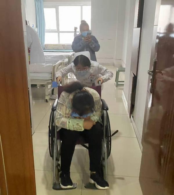 責(zé)任護(hù)士王佳耀及張倩緊急疏散患者