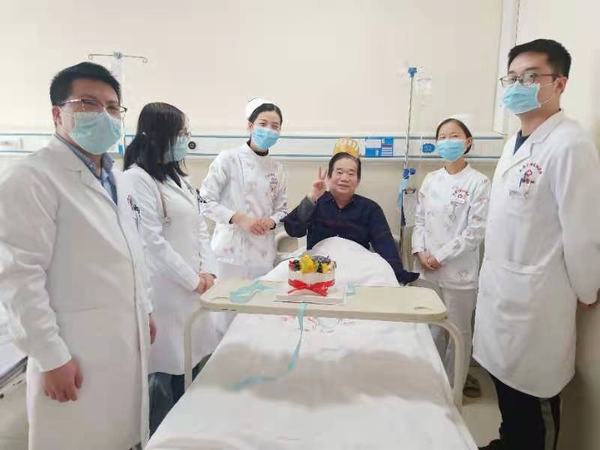 12月17日,對于我們來說是一個普通的日子,對于趙大叔來說,是一個特殊的日子,生日對于每個人來說都有著非同尋常的意義,它代表著生命與希望。我們又一次的為患者籌辦生日會,戴生日帽、唱生日歌、送生日祝福、這一切在我們看來是多么的平常,但對于該患者來說是一個莫大的安慰!老人提到:每次生日都是老兩口簡單吃頓飯,兒女工作繁忙,多少年都沒有隆重的慶祝過生日了!在悠揚的生日歌中、在一聲聲的祝福語里、在心一科醫(yī)護人員的真情陪伴下,趙大叔度過了一個簡單、溫馨而又特殊的生日。“謝謝,謝謝……” 一句句樸實而重復的話語,卻表達出來自患者及其家屬最為真誠的感謝!