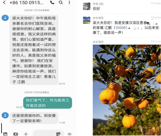 2020年12月17日下午,一陣急促的電話鈴聲響起,而后康復(fù)治療一區(qū)梁莉娜主任收到一個(gè)陌生的包裹,包裹里面裝著整整十斤甜美的柑橘。這是誰送的?為什么送給我?梁莉娜主任大感疑惑,但隨后的一通電話解開了她心中的疑慮,更讓她心中暖暖的,這一切都要從2020年11月19日門診接診的一名患者家屬說起。