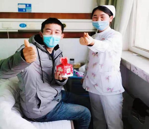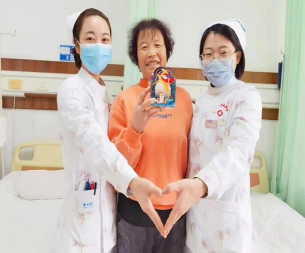 看到病人臉上洋溢的微笑,相信一切的努力都是值得的,小小的“平安果”凝刻著血液內(nèi)分泌科每一位醫(yī)護(hù)人員深深的祝福?!案兄x你們的信賴,您的健康之托,血液人必全力以赴?!痹跒樽≡夯颊叨妓屯隃嘏?,王芳主任和杜梅梅護(hù)士長也為科室的員工送了“平安果”和溫馨的祝福。