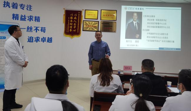 下午3點(diǎn)30分,會(huì)議正式開始,經(jīng)過劉連鋒主任隆重介紹后,西安市第一醫(yī)院楊軍樂教授進(jìn)行了會(huì)前致辭,楊教授表示,通過對(duì)我院整體規(guī)模建設(shè)與我科室影像設(shè)備的參觀,明顯感受到我院發(fā)展建設(shè)的迅速與影像科室大力推動(dòng)品牌建設(shè)的決心,對(duì)劉主任在學(xué)科建設(shè)及文化宣傳上的執(zhí)著專注、精益求精的精神深受感動(dòng),同時(shí)對(duì)我科室工作人員給予勸勉,鼓勵(lì)大家要認(rèn)真像劉主任學(xué)習(xí),對(duì)待工作一絲不茍,追求卓越,將影像事業(yè)越做越好。
