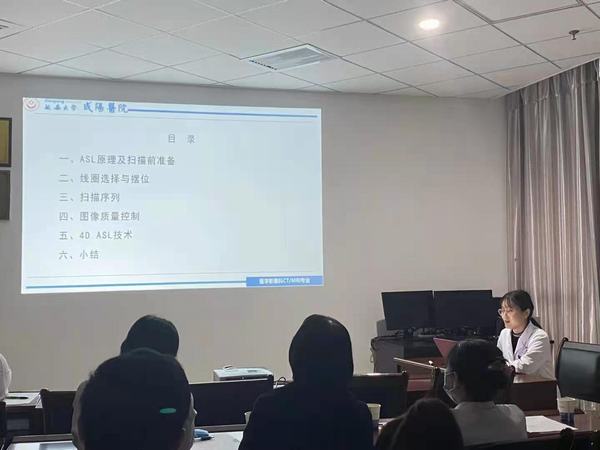 隨后,我科室蒲晨醫(yī)師和孫珍技師分別以《顱腦灌注成像臨床應(yīng)用》與《顱腦ASL掃描規(guī)范》進(jìn)行了展示與講解。楊教授觀看后,對(duì)我科室在顱腦灌注成像臨床應(yīng)用及顱腦ASL掃描技術(shù)上提出的問(wèn)題給予了解答與指導(dǎo),他表示在顱腦灌注成像及掃描方面,掃描定位及血管因素是影響圖像質(zhì)量,對(duì)于我們的技術(shù)人員在業(yè)務(wù)方面有了更深層次的的學(xué)習(xí)及要求。通過(guò)本此講課,臨床及醫(yī)技科室對(duì)于顱腦灌注成像的診斷及認(rèn)識(shí)有了進(jìn)一步的了解。