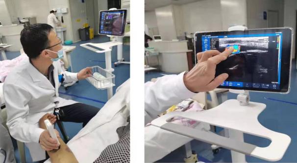 腎病科透析患者姚某某,男,56歲,診斷:慢性腎功能不全(尿毒癥期),規(guī)律透析兩年余,三次/周。患者多次透析出現(xiàn)血流量降低,導(dǎo)致透析不完全。腎病學(xué)科王衛(wèi)軍主任為進(jìn)一步了解患者的內(nèi)瘺情況,在掌上超聲的引導(dǎo)下準(zhǔn)確清晰的觀察到內(nèi)瘺血管情況;通過(guò)血流色彩準(zhǔn)確判斷動(dòng)靜脈血管,護(hù)士對(duì)內(nèi)瘺穿刺成功率明顯提高,減少反復(fù)穿刺對(duì)血管的破壞,操作簡(jiǎn)單、圖像清晰。掌上超聲今后為科室病人行血液透析用血管通路的建立,及內(nèi)瘺穿刺帶來(lái)了方便。