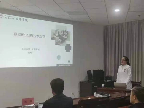 下午3點30分,會議正式開始,經(jīng)過劉連鋒主任隆重介紹后,西安交通大學(xué)第一附屬醫(yī)院張明教授進行了會前致辭,張教授表示,每次來到咸陽總是懷揣著深厚的情感,看到我院及我科室不斷發(fā)展前進他感到十分的欣慰,同時對我科室工作人員給予勸勉,強調(diào)要做好病例的追蹤隨訪,不斷提高診斷水平,加強業(yè)務(wù)能力。隨后,張明對《磁共振波譜在中樞神經(jīng)系統(tǒng)疾病應(yīng)用》進行講授,從MRS臨床應(yīng)用、存在問題、質(zhì)量控制及質(zhì)量控制的應(yīng)用效果診斷思路四個方面進行了標(biāo)準(zhǔn)與規(guī)范化的指導(dǎo),對于MRS常見疾病及鑒別診斷通過病例展示向大家進行了精彩詳細的講解,內(nèi)容豐富,積極調(diào)動了在場聽眾的學(xué)習(xí)興趣。張教授指出,MRS掃描定位技術(shù)、序列的選擇、譜線的質(zhì)量都是影像我們對疾病診斷的因素,因此建立MMRS規(guī)范化掃描流程是做好MRS質(zhì)控工作的關(guān)鍵。本次授課讓與會臨床及醫(yī)技人員對磁共振波譜原理及應(yīng)用有了清晰與深刻的認(rèn)識,對我院MRS掃描及疾病診斷水平有顯著提高。