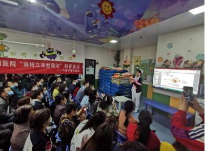 生活中,充滿歡樂的同時也有意外,所以突發(fā)情況下的急救措施,是每個人必須要了解和掌握的。針對學齡前孩子年齡小,自我保護能力弱的特點。4月21日下午,我院氣道護理專業(yè)組組長杜芝娟帶領氣道專業(yè)組委員來到渭城博雅幼兒園,為幼兒園老師及家長們開展急救知識培訓,重點講解“海姆立克急救法”,增長老師及家長們的急救知識,為幼兒的安全保駕護航。