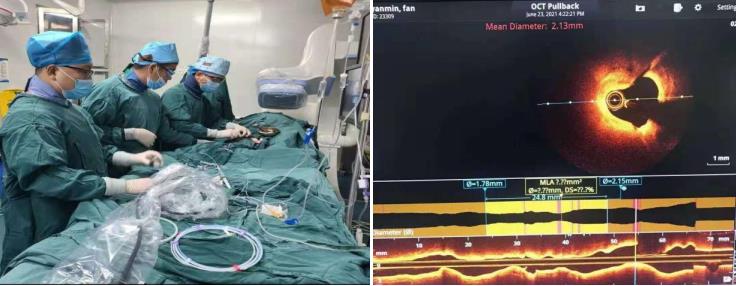 2021.6.23.16:00延安大學(xué)咸陽(yáng)醫(yī)院心血管介入手術(shù)室,在吳棟梁院長(zhǎng)指導(dǎo)下,心5科李陽(yáng)主任教授為60歲 男性患者,在最新一代冠脈光學(xué)相干斷層檢查(Angio-OCT)的指導(dǎo)下進(jìn)行了冠脈介入手術(shù)。這標(biāo)志著咸陽(yáng)市心血管內(nèi)科介入精準(zhǔn)治療再上新階段,成為繼FFR、IVUS(冠脈血管內(nèi)超聲)、冠脈內(nèi)旋磨等精準(zhǔn)治療后再次首家(唯一一家)開(kāi)展OCT精準(zhǔn)治療的醫(yī)院,填補(bǔ)了咸陽(yáng)市心血管內(nèi)科專業(yè)發(fā)展的空白,為廣大冠心病患者帶來(lái)新的福音。