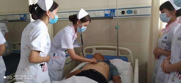 本次查房活動由黨文婷總護士長主持,現(xiàn)場就如何做好護理教學(xué)查房進行了細致講解,并詳細介紹了本次教學(xué)查房活動的目的和意義。隨后,心血管內(nèi)科一病區(qū)護士長姚沖組織護理團隊以一例心力衰竭患者為案例進行教學(xué)查房,采取PPT教學(xué)與現(xiàn)場查房相結(jié)合的教學(xué)形式,突出體現(xiàn)了個案護理的重點內(nèi)容。通過問診、查體、評估著手,從而給出有針對性的護理診斷,以及個性化護理措施。查體環(huán)節(jié)帶教老師、實習(xí)生與患者共同進行了討論,指出了心力衰竭患者日常自我病情監(jiān)測及護理的重要性和必要性,并現(xiàn)場教會了患者出院后如何關(guān)注飲食、體重、運動、用藥等,指導(dǎo)患者出現(xiàn)不適時緊急處理方法,現(xiàn)場為實習(xí)生和患者演示患者發(fā)生心力衰竭以后有效緩解不適癥狀的體位,整個討論過程得到了患者的認可。最后,不同層級護士針對查房內(nèi)容提出自己的疑點、困惑進行分析和探討。