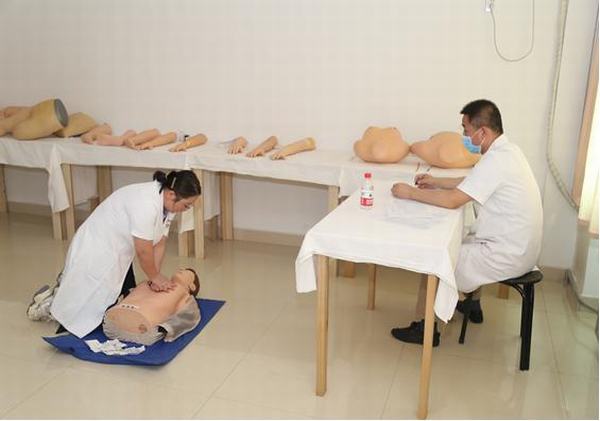 在考核現(xiàn)場(chǎng),每位新員工心肺復(fù)蘇操作熟練,態(tài)度積極,體現(xiàn)了較強(qiáng)的應(yīng)急反應(yīng)能力和救援能力??脊俟ぷ髡J(rèn)真,嚴(yán)格要求,對(duì)每一位參考的人員給予現(xiàn)場(chǎng)指導(dǎo)、點(diǎn)評(píng),對(duì)一些操作不規(guī)范的考生,考官現(xiàn)場(chǎng)予以指導(dǎo)和講解,重新進(jìn)行考核,直至高分通過。