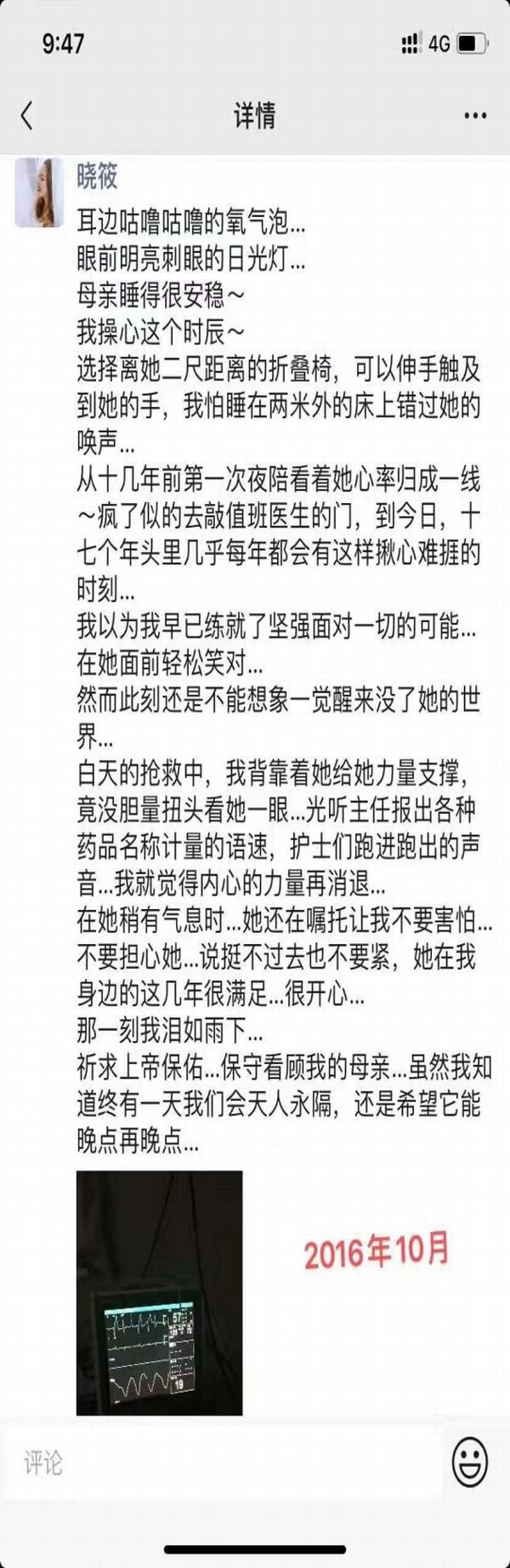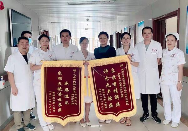 “作為一名二十年前被專家會(huì)診,告知母親心衰程度生命僅有三到五年光景,和醫(yī)院長(zhǎng)期打交道的醫(yī)患家屬,我們?cè)跒豸斈君R、西安、咸陽(yáng)住過(guò)多家醫(yī)院,有著豐厚住院履歷的經(jīng)歷中,母親已經(jīng)頑強(qiáng)的走過(guò)了23個(gè)年頭。今天是我僅有的一次舉動(dòng),我在母親感恩的授意下,想到送兩面錦旗,給近七年來(lái)全心全力、為母親救護(hù)和治療的延安大學(xué)咸陽(yáng)醫(yī)院——蔡萍主任領(lǐng)導(dǎo)的心血管內(nèi)科三病區(qū)科室。七年前,首次夜遇的陳磊醫(yī)生,專業(yè)精湛、盡心竭力,帶領(lǐng)我們半夜奔波直入各個(gè)檢查室,只為第一時(shí)間掌握母親復(fù)雜的心臟病情,此舉感動(dòng)到了強(qiáng)大理性的父親,還有每次夜里危機(jī)都能遇到的珍珍護(hù)士,她技術(shù)嫻熟、熱情樂(lè)觀,陌生相識(shí)、甚于親人,每天笑吟吟的喚著“老太太~”。突破過(guò)最兇險(xiǎn)的搶救,蔡萍主任的心內(nèi)三病區(qū),值得更高的榮譽(yù)和贊賞對(duì)于家有疾病纏身的親人,我們的建議:積極治療、按時(shí)服藥,同時(shí)調(diào)動(dòng)一切的愛(ài)的表達(dá),因?yàn)椋簮?ài),是最好的抗病因子。”這是摘自患者女兒朋友圈的一段話,令我們所有人為之動(dòng)容。