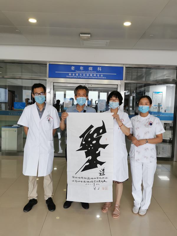2021年8月16日下午,在醫(yī)護(hù)人員井然有序忙碌的時(shí)候,一位患者家屬走進(jìn)來(lái),拿著提袋,從里面取出一幅字畫(huà)。力透紙背的“醫(yī)道”二字,呈現(xiàn)其中。稱贊延安大學(xué)咸陽(yáng)醫(yī)院老年病科霍金蓮主任醫(yī)德高尚,醫(yī)術(shù)精湛,謹(jǐn)慎負(fù)責(zé),贊美之詞溢于言表。頓時(shí),醫(yī)生辦公室變得熱鬧起來(lái),引來(lái)好多患者及陪人欣賞字畫(huà),老年病科的辦公室內(nèi)充滿了歡聲笑語(yǔ)。