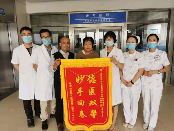 時(shí)隔半小時(shí),又傳來(lái)一陣緩慢的拐杖聲。張阿姨和她的老伴申叔叔今天出院,特意做了面錦旗,送給主任和李海榮醫(yī)生。感謝大家在他們住院期間,醫(yī)護(hù)人員給予的治療與護(hù)理,對(duì)治療效果非常滿意。護(hù)理人員給予的照護(hù),讓他們感受到不是親人,卻勝似親人般的關(guān)懷。